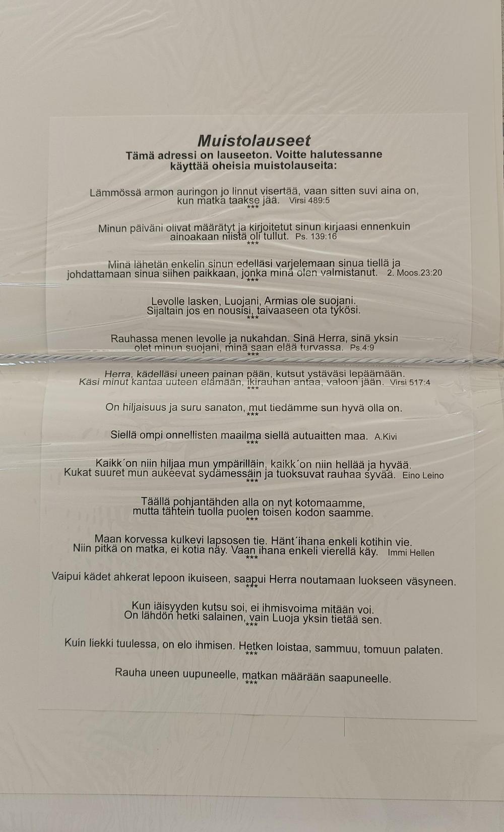 Yhdistyksellä myytävänä Selkäliiton onnittelu- ja surunvalitteluadresseja hintaan 11,00 € + postikulut.